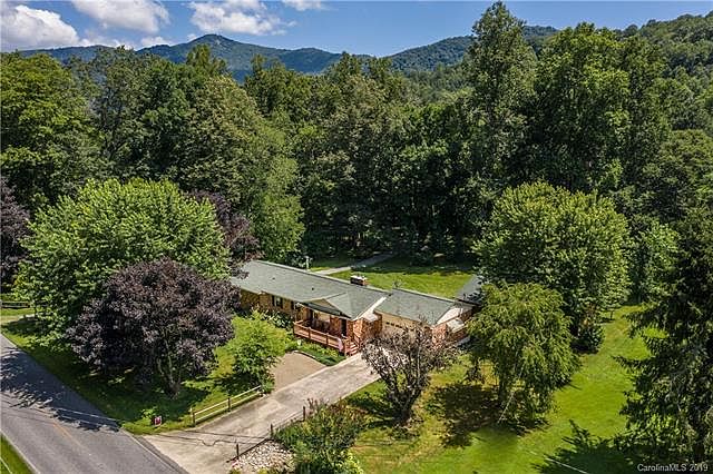 City life have you down? Location, location - position yourself with an easy drive from Waynesville but just far enough out for country life! Huge river frontage on East Fork River just a river stone throw away from the Pisgah Forest entrance. This adorable ranch has been fully remodeled with everything new. Fully Remodeled Solid Brick Ranch on 4.9 acres, sale includes Campground with Firepit and Canning sink, RV double Garage, Shed and deck area near the River, shed for tools and toys and flat yard for gardening or activities. Very private with mature landscaping and fruit trees. Perfect for making a family compound. Wood floors throughout plus 3 bedrooms, 2 full baths, attached garage and detached RV garages are just some of the features . Large family room with wall of window with brick fireplace in family room adjoins the stunning kitchen for the chef in the house. Very quiet and peaceful, come with a dream and make it happen on this spectacular property.