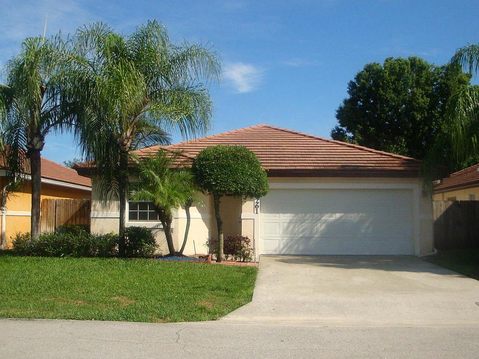 Great home with vaulted ceilings & screened covered patio. Master Bedroom with walking closet & sliding doors to patio. Master Bathroom shower new with glass doors, dual sinks & linen closet.Fenced Back yard with beautiful landscape. Low association fee includes lawn maintenance, community pool & tennis courts. Close to Wellington community center & market place. Don't miss this opportunity to own your home.