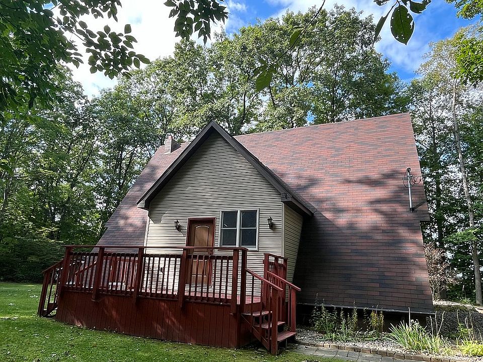 Location, Location, Location! Take a look at this beautiful home on 1.5 acres back in the woods but within 2 miles of the expressway for easy access to Saginaw, Flint or Detroit. Chalet style home 3 bedrooms with a 4th bedroom/office (no closet) 1 1/2 bath 1600 sq feet Full Basement-tons of storage 2 wood decks 1 large garage 1 utility shed 1 wood shed Beautiful backyard- includes fire pit. Room for playscape. Garage details: 28x32, 12ft garage door, 12 ft ceilings, completely finished, electric. Much more to be seen. Request a showing at 810-625-3044 or 989-928-7110. Completely turn key! Move in today!