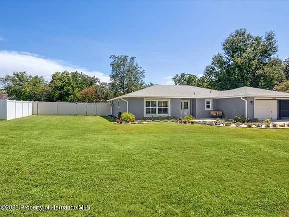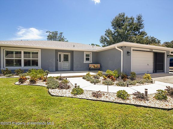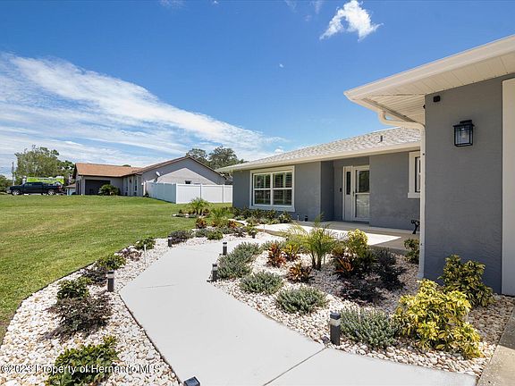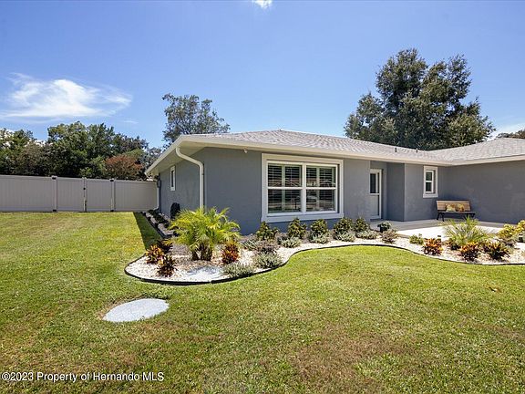 Active under contract! Accepting back up offers! DO OVER! This home has been COMPLETELY renovated with superb quality and craftsmanship from the owner! He took small rooms and made an impressive open floor plan! The sunken living room was raised to even and the whole home has whitewashed wood looking tile throughout for low maintenance and care. All popcorn ceilings were replaced with modern lace design. Lighting was all changed to recessed can lighting! Completely new kitchen with beautiful wood cabinets, granite counter tops, high end efficient , stainless steel appliances. Both bathrooms have undergone complete renovation for a very modern look! The whole home has been painted inside and out with tasteful colors! Crown molding, lovely plantation shutters enhance the aura of peacefulness. AC is 2020, new pool cage 2020, All new windows with custom sills, 2019, new pool pump, new front door, 2010 roof with that added 3rd nail for great insurance discount! The pool area overlooks a very private fenced in back yard. New 8 ft back fence and 6 ft on the boundary sides encases this half acre oasis! Now for the pool area where you will spend ALL of your leisure time. The covered area has an outdoor kitchen, HUGE TV and maintenance free pavers to relax and enjoy the Florida lifestyle! The pool is also surrounded by pavers and is a HEATED salt water pool!. An addition was added to accommodate the hot tub for complete serenity! The oversized garage also has ample driveway space as extra concrete was poured. This home has everything! 2 backyard sheds , one is 12x16, and the other is 10x12 for a workshop or hobby room! You have an RV? There is an extra driveway with millings leading to the private backyard to accommodate that with electrical hook out already installed! Poured sidewalk for clean feet outside pool area! The location is peaceful country close to city living ! NO HOA deed restrictions or costly flood insurance!! Convenient to Suncoast Parkway, restaurants and shopping! This home is SPECIAL and deserves that SPECIAL buyer! Hurry before it's GONE!