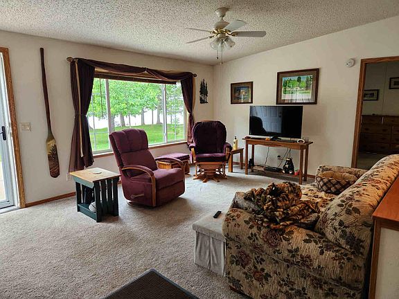 Portage Lake home in excellent condition and level elevation to the lake. This 3 bedroom, 2 bath home has new flooring, new roof in 2019, attached heated garage, detached garage, bunkhouse, underground propane tank and asphalted driveway. Dock, pontoon and most furnishings are included in the sale. Property is just minutes from town, the Heartland Trail and several other lakes to explore!