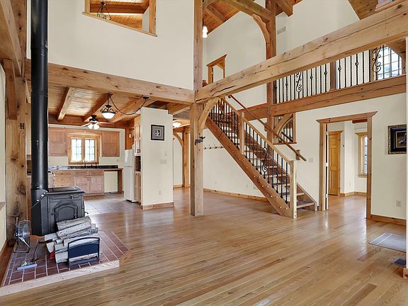 Come take a look at this one owner wooded riverside escape on 1.27 acres not in the flood plain. This custom designed 2011 timber built home and detached 2 car garage with bonus bathroom and finished loft space are a hidden gem. Upon entering the home you will find a spacious kitchen, open air living room with wood burning stove, laundry room, and master suite with windows facing the water 2 closets and tiled shower. Head up the floating staircase at the center of the home to find 2 additional bedrooms, a bathroom, and loft area. The 2nd floor shower is not finished out but plumbing is run so pick your finish and have the upstairs shower finished out to your preference. Outside the home you will find a 2 car detached garage with a bonus bathroom and finished loft area not included in the finished square footage listed on MLS. The garage has a propane heater hanging and window air conditioners which all stay with the property to manage the temperature of the garage all year round. Out on the water you will find a staircase leading down to the waters edge along with a deck overlooking the peaceful riverview. Don't miss out on this beautiful wooded riverside home today!