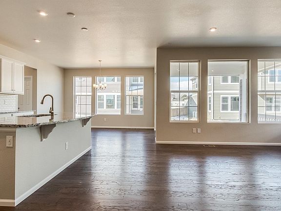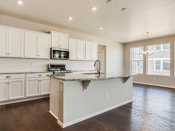Brand NEW energy-efficient home ready NOW! This beautiful Ridgeline home features a formal living room, four bedrooms, plus 3-bay tandem garage. The open great room with column ceiling leads to the island Kitchen, dining area & wonderful outdoor living space. Features include: granite kitchen counter-tops, double oven, crown molding, hardwood flooring thru-out main, full AC dual zone, full 9' basement with bathroom rough-in, 5 piece master bath, fireplace in great room, and more! Enjoy living at Aspen Reserve conveniently located close to Downtown Denver. Known for our energy-efficient features, our home help you live a healthier and quieter lifestyle while saving thousands on utility bills