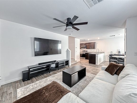 We Hope You Feel Welcomed To The Booming South Las Vegas Area With This Spacious 2021 Townhome Nestled In The New Mosaic Community. Private 2 Car Garage W/ Entry To Home & Gated Courtyard Upon Entry Provides Some Additional Space For Your Use & Enjoyment. No Shortage Of Space With 2 Levels Spanning Over Approximately 1,533 SqFt. Featuring 2 Bedrooms & 2.5 Bathrooms. Beautiful Vinyl Flooring Throughout The Home w/ Carpet Upstairs. Clean Slate Color Scheme In Living Areas So You Can Add Your Own Personal POP! Kitchen Features Beautiful Dark Chocolate Cabinets & Stainless Steel Appliances. Upgraded Faucet & Deep Basin Sink. Glass Top Electric Stove & Built In Microwave. Both Bedrooms Upstairs. Spacious Primary Bedroom W/ Private Bathroom. 2nd Bedroom Situated Across The Hall From Primary Bedroom. Explore The New Mosaic Community & Booming South Las Vegas Corridor. Located Right Near I-15 For Easy Access to CA Or LV Strip. Near Lion Habitat Ranch & Across The Street From The M Resort.
