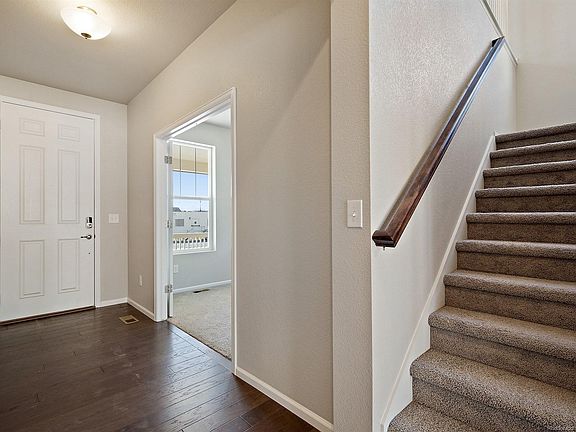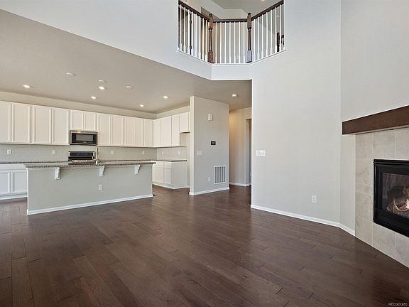 Brand NEW energy-efficient home ready NOW! This beautiful Ridgeline home features a formal living room, four bedrooms, plus 3-bay tandem garage. The open great room with column ceiling leads to the island Kitchen, dining area & wonderful outdoor living space. Features include: granite kitchen counter-tops, double oven, crown molding, hardwood flooring thru-out main, full AC dual zone, full 9' basement with bathroom rough-in, 5 piece master bath, fireplace in great room, and more! Enjoy living at Aspen Reserve conveniently located close to Downtown Denver. Known for our energy-efficient features, our home help you live a healthier and quieter lifestyle while saving thousands on utility bills