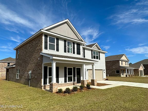 Enjoy nature and privacy from your covered back patio on this 100-foot-wide lot in a charming community of only 39 homes including a community pool and playground within minutes of Historic Downtown Ocean Springs, beaches, casinos, Keesler, and all the Coast has to offer. New construction home with plenty of space. Features include gourmet kitchen with island bar, designer soft close cabinets, granite countertops, subway tile backsplash, farmhouse sink, stainless steel appliances, walk-in closets in every bedroom, separate tile shower and garden tub in the owner's suite located on the bottom floor, 2 living areas - 1 downstairs & 1 upstairs, and 2 car garage. This energy efficient brick home includes a Smart Home package and warranties. Options & colors may vary*