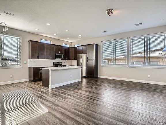 This move-in ready town home offers large ranch style living in Parker. The town home is immaculate and has brand new carpet and interior paint. The open concept floor plan has a large kitchen with quartz and a big island, a dining area and great room with a gas fireplace and access to the covered patio. The primary has an ensuite and large walk in closet with a closet system. The two secondary bedrooms are at the other end of the home and are serviced by an oversized hall full bath. The laundry room is a big room with plenty of space for additional shelving/storage. The washer and dryer are included. The community has a nice pool with pool house, playground and picnic area. Close to Parker and Hess Road where there is plenty of shopping, restaurants and services.