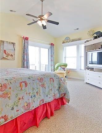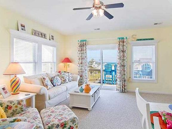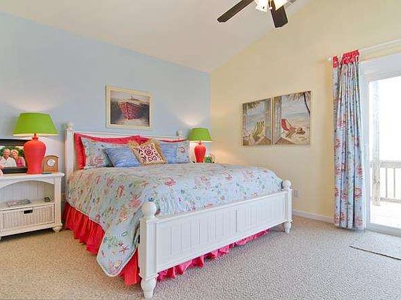 Waterfront reverse floorplan home with shared dock on the water. Interior features include open airy flooplan with views of ocean and sound, spacious kitchen with plenty of cabinet and counter space, and 4 bedrooms with great waterviews. Expansive front and back decks perfect for enjoying the views and the ocean breezes. Easy walk to the beach access. BEACH BUTLER Elevator on back deck.