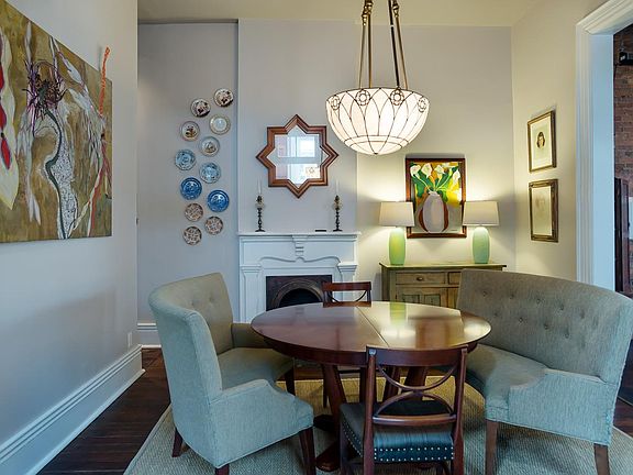 Listed on the Register of Historic Places, this renovated 19thC row house has a contemporary vibe. Lush, private garden. Off street parking for 2 cars. Master Bedroom with fireplace. 2nd bed & bath in loft. High ceilings, exposed brick, original floors