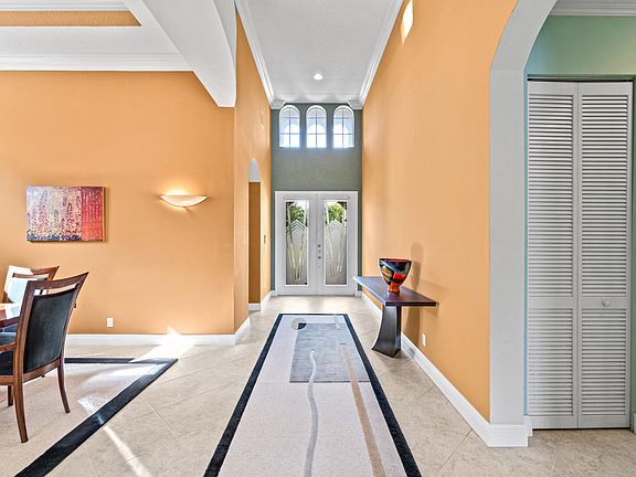 This IMMACULATE new listing has been remarkably maintained and enhanced by the original owners. Volume ceilings, extra wide crown molding, energy efficient AC, stone tile flooring, HIK 6-camera security system, plantation shutters, custom lighting, salt pool system with robotic pool cleaner, exterior drainage system to move rain water away from the house, accordion hurricane shutters, fully fenced backyard, NEW Generac whole house generator and so much more! (See docs) Impeccably landscaped yard and paver walkways lead to designer front doors. The two-story foyer provides a grand view of the lake as soon as you enter this home. Both living and family rooms provide floor to ceiling windows that allow for fabulous natural lighting! A wonderful ''chef's'' kitchen (see supplement for more