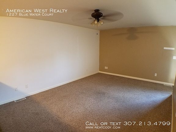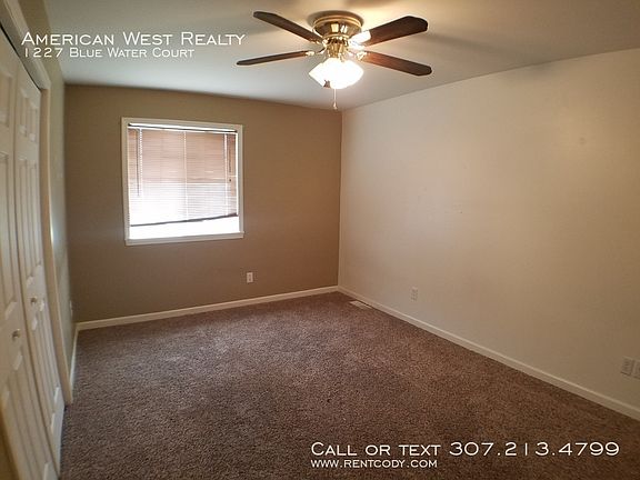 SCHEDULE A SHOWING ONLINE AT: showmojo.com/lh/381b9d5053 End unit on corner lot located just blocks from downtown Cody. Attached 1-car garage. Main floor has living room, kitchen, two bedrooms, and a full bath. Basement has large bedroom, family room, full bath, and laundry. Central A/C and forced air heat. Back yard has newer maintenance-free deck. Sprinkler system throughout. Pet negotiable. Contact American West Realty for more information. Air Conditioning Central Air Ceiling Fan Deck / Porch Fencing Fully Fenced Garage Heat Forced Air Kitchen Dishwasher Kitchen Refrigerator Kitchen Stove / Oven Sprinklers Automatic Utility Black Hills Energy Utility City Of Cody (Water, Electric, Sewer, Trash) Washer/Dryer In Unit