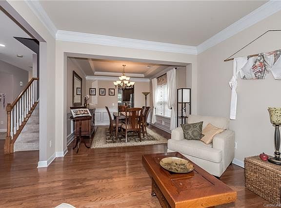 There is not much this house doesn't have! gleaming hardwoods, fresh paint, new carpet, open floor plan, stainless appliances, private, fenced back yard, neighborhood pool and cabana, convenient to gourmet shops & restaurants, interstates, Concord Mills, and Cabarrus County schools!! South facing home with 2-car garage (newly painted), formal dining and living rooms with moulding package, hardwood floors, and tray ceiling. Kitchen features ceramic tile floor, back splash, stainless smooth top range, island with bar seating, recessed lights. Tile continues to the breakfast room with ceiling fan! Owner's suite upstairs has dbl tray ceiling w/ fan, dual closets, en suite bath with dual vanities, soaking tub, water closet, & stand up shower. Two guest rooms upstairs share a Jack & Jill bath. Third guest room shares a hall bath with the bonus room. Bonus room is wired with surround sound, has walk-in attic, and closet making an excellent 5th bedroom!