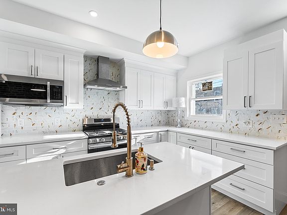 Charming recently renovated 2 bedroom 2 bathroom rowhome in Washington Village with distinctive curved front and exposed brick interior wall. Gorgeous kitchen has S.S. Appliances, gas stove, fresh white cabinetry, quartz countertops and island. Upper level has full bath in primary bedroom and one full bath off hallway plus stacked washer / dryer. LVP flooring and recessed lighting throughout. Unfinished lower level. Fenced backyard with concrete pad. Must See!!!