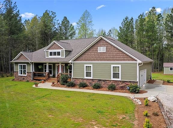 Beautiful Craftsman Style Ranch shows like a Model Home, Sits on 6.5 acres, 400' off the public road, plenty of privacy! (.75 acres of pasture, 1 acre cleared homesite and 4.5 acres of woods). This open floorplan features a formal dining room & office, large living room with a gorgeous stone gas log fireplace and pre-finished hardwoods in all common areas. The kitchen with breakfast area features granite countertops, beautiful cherry cabinets, stainless appliances and gas cooktop! Large master with 2 walk-in closets, granite double vanities and a large custom tiled shower! Relax on the peaceful covered front porch (6'x30') or the covered back porch (16'X10'), overlooking the woods. The property also offers a pre-wired out building (12'x28') and a 18'x36' camper shed wired with 35 amp service.