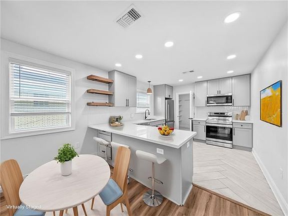 Stylish, move-in ready cottage in the heart of desirable McDonoghville! This beautifully renovated home blends historic charm with modern upgrades throughout. Fully updated in 2021 including roof, plumbing, electrical, HVAC, water heater, kitchen, and baths this home offers worry-free living. Recently updated again with brand new vinyl plank flooring throughout no carpet in sight! The inviting primary suite features a spa-like bath with a zero-entry shower, frameless glass enclosure, and custom tile work, plus a spacious walk-in closet. Curb appeal abounds with natural wood porch columns and a rustic wood front door that adds warmth and character. Inside, the kitchen showcases grey shaker cabinets, light quartz countertops, and an oversized pantry/laundry room for added convenience. Step outside to enjoy the large, fully fenced backyard complete with a modern, private hangout area perfect for entertaining or relaxing. This home is packed with custom details and thoughtful finishes, making it one of the most stylish options on the market. A true must-see!