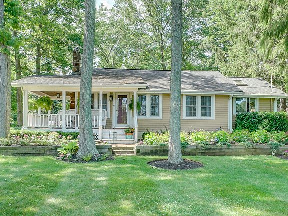 Come make this charming craftsman style ranch yours! Enjoy the rocking chair front porch for entertaining family and friends. Overlook new tranquil landscaping with irrigation system and private treed yard. Wood burning fireplace in large living room. Tons of natural light flows through skylights in bedrooms and hallway. Sliding doors off Master Bedroom to private stone paver patio. Detached oversized garage with work bench. Large rear private yard behind garage. Plenty of parking in driveway.