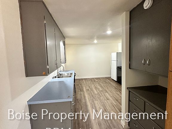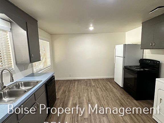 Mid century duplex unit located right outside of Boise's historical district offers fresh paint, carpet, and LVP. This home has a large living room with wide windows offering great natural light and a 'drop zone' space right off the front door. The kitchen offers a wide galley style, with ample cabinetry, sink, and dishwasher to the left. With additional cabinetry, electric stove, refrigerator/ freezer, and washer/ dryer on the right. Plus a dining space at the end of the kitchen. Off of the living room is a hall with access to both large bedrooms, that include similar closets. As well as, the newly updated- modern bathroom, and built in storage. This property also offers a covered carport with a storage unit and an additional drive way space. This unit is minutes from downtown Boise, hiking trails, shopping, and more. Owner pays water, sewer, trash. Tenant responsible for power, and gas. Cats permitted with pet deposit and monthly pet rent. No smoking please. 12 mo. lease One covered carport space and additional drive way space. Managed by Boise Property Management.