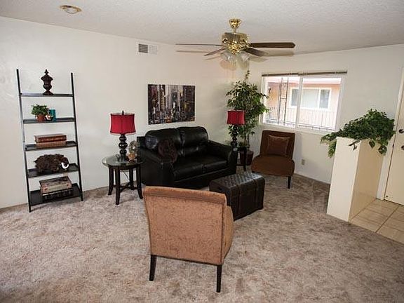 2BD/2BA Ultra spacious 1072 sqft, apartment in serene courtyard setting. Large living and kitchen areas with dining space. Central heating and air with ceilings fans in the bedrooms and living room. Plenty of storage space with built-in hutches and dressers. On site coin-op laundry, carport with storage, fountain in courtyard. Sorry, No Pets.