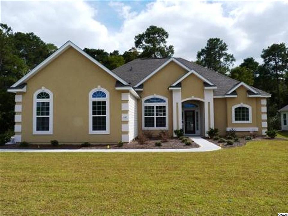 Jupiter II Plan, with bonus room and full bath. Three bedroom and two baths on main level. Large porch and patio overlooks private backyard on conservation area. Large master suite with door to covered porch. Owner's bath with tile shower, double vanity and garden tub. Great room and formal dining room with hardwood floors. Kitchen features granite countertops and stainless steel appliances including a gas range and a bright, spacious breakfast nook. Large bonus room with bath and closet for use as possible 4th bedroom. Many extras include an outlet for gas grill on back porch and lawn irrigation. Versatile floor plan,in what is sure to be one of Myrtle Beach's finest communities.. Sago Plantation is a Private Gated Community with easy access to airports, excellent schools, colleges, fine restaurants, and world-class golf and shopping. Sago Plantation has a beautiful natural environment, with very large homesites and great water or wooded views