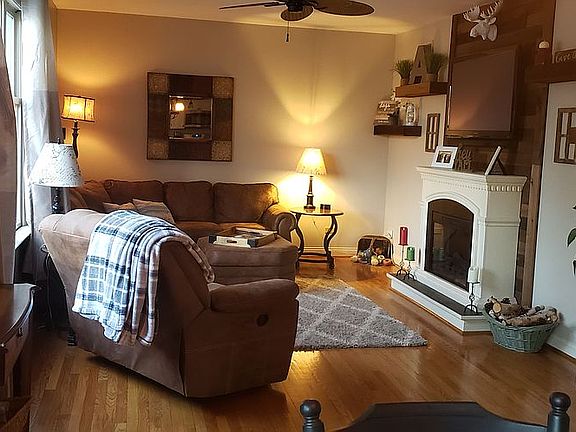 BEAUTIFULLY APPOINTED! NEW ROOF & ALUMINUM SIDING ’07. SLATE FRONT WALK & COVERED ENTRY, UPGRADED FRONT DOOR&SIDELITES, HW FLOORING, CROWN MOLDING/CHAIR RAIL, ARCHED OPENINGS, CER TILE FLOORING IN FULLY-APPL ISL KIT, CATH MBR WITH HIS&HER WIC’S, SITTING AREA W/FP& SLIDERS TO BALCONY, FIN BSMT W/FULL BATH PLUS WORKSHOP, FENCED B/Y WITH DECK, GAZEBO, HOT TUB, PATIO & SHED. BACKS TO PARK DISTRICT!