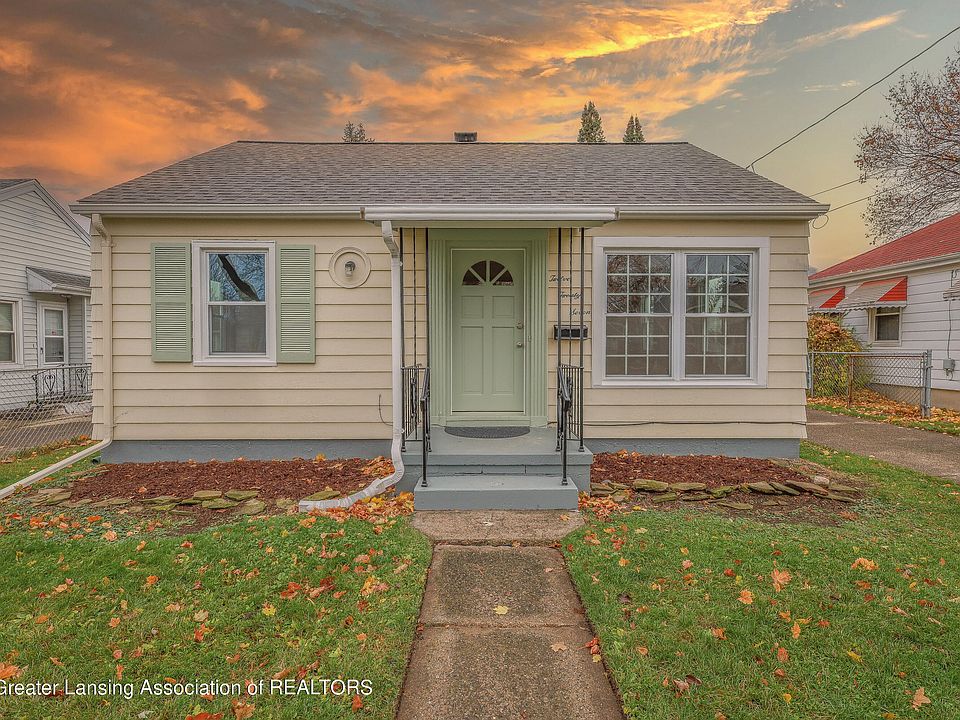 Welcome to 1227 George Street, Lansing, where charm meets convenience in the delightful Quentin Park neighborhood! This home epitomizes cozy elegance, featuring a brand new roof, refinished hardwood floors that sparkle, and a newly renovated bathroom. Enjoy a tidy kitchen featuring brand new flooring, freshly painted cabinets, and a dishwasher and pantry. There are also vinyl replacement windows that flood the entire home with natural light. Outdoor living is a breeze with a covered patio and a detached garage along with a fully fenced yard, perfect for pets. Conveniently located near freeway access and the Rivertrail trailhead, this squeaky clean residence offers a perfect blend of modern updates and classic style.