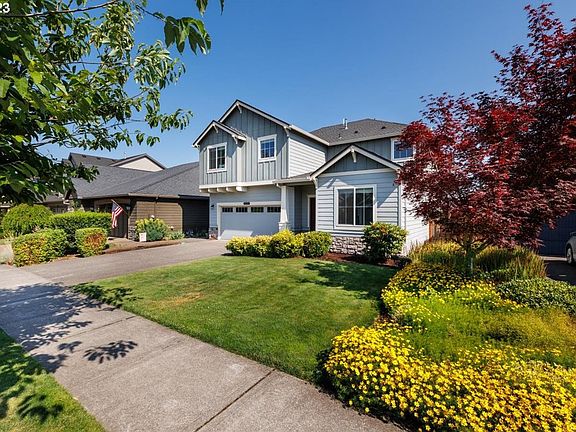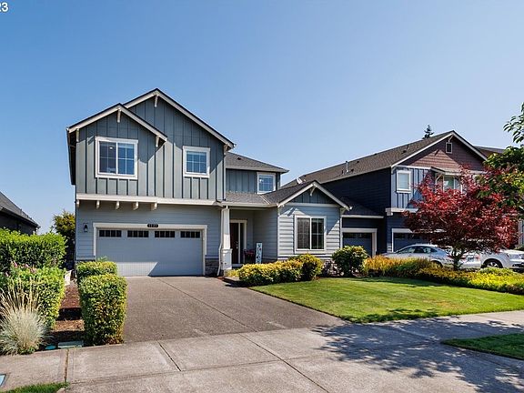 New price on Pacific Crossing Traditional with loads of upgrades and 3rd full bath! Ideal location just a block to the neighborhood park and pool. This one-owner home is built for today's living with high ceilings and great room floor plan featuring dining room and open living room/kitchen/nook. Upgrades include laminate flooring, SLAB granite, central air, and tile fireplace surround with basket-weave design. Office AND bedroom + full bath complete the main floor. Upstairs you find three generous bedrooms with valley views in the distance. Spacious bonus room features convenient built-in craft/study desk. All 3 bathrooms feature tile floors. Nest thermostat. Fenced easy-care back yard is very private (backs to storage shed/garage on oversized neighboring lot). Front yard maintained by HOA. Convenient location near Pacific University, Forest Grove High and downtown Forest Grove. A great place to call home!