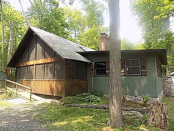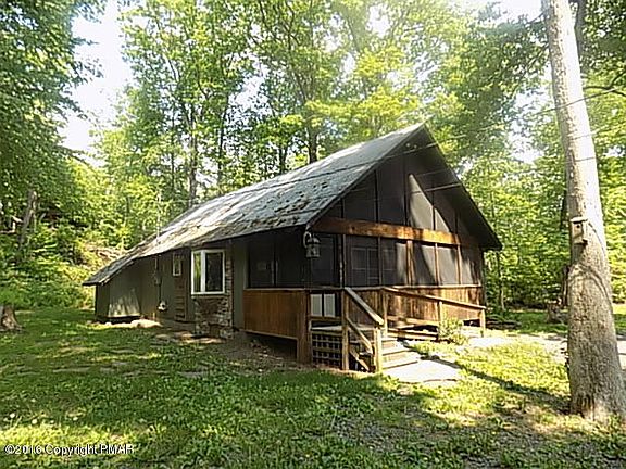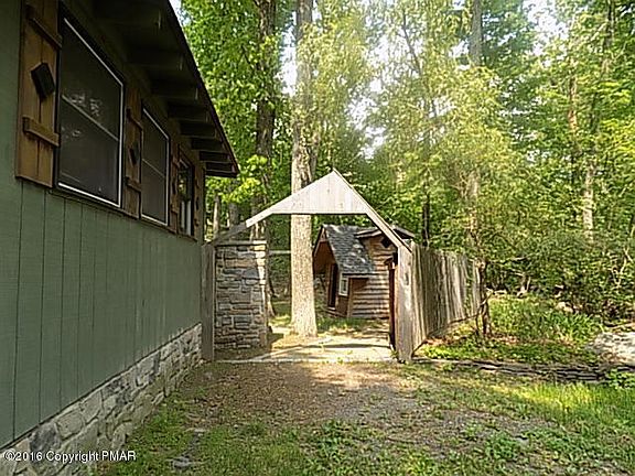Country Living Set In A Mountain-Esque Surrounding Among The Trees & Wild Life. From The Circular Driveway To The Rustic Exterior, Which Leads you in to a Open Floor Plan Featuring Wood Accents, Vaulted High Ceilings, Skylights, Stone Surround Fireplace, Pellet Stove, 2 Bedrooms and 1 Bathroom on Main Level, plus a 3rd Bedroom and Loft Area on second level. Ceilings fans along with the mountain breeze will offering cooling, or Enjoy Some Time On The Rear Large Deck , Overlooking The Playhouse/ Storage Shed. Come Year Round, Come Relax on The Weekends & Holidays, This Chalet Style Home Away From The Busy City Is A Prescription For Relaxation & Harmony ! Buyer Pays 2% Transfer Tax