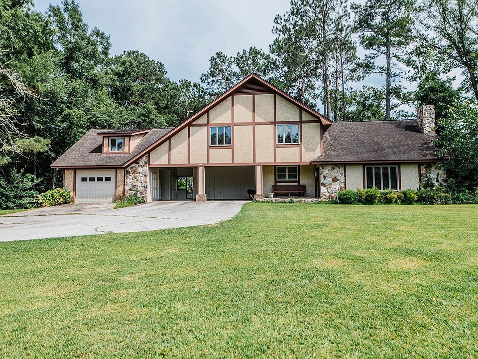 Exquisite 4BR/4BA, executive Tudor home and pond on over 13 acres of privacy near a quiet, country town. Includes two separate, partially cleared areas with wooded privacy (One 1-acre area. One 3-acre area.) Perfect for a small orchard, private garden, or for expansion. This dream home is quietly nestled off Highway 341 next to a large Pecan Orchard. The gem is priced to sell quickly due to owner work relocation. Located just 3 miles from downtown Eastman, it also offers a 50 minute, easy commute to Warner Robins Air Force Base. Parking for everyone includes a pull-thru boat or 2 car garage, and an additional 2 spaces under covered carport. Separate air conditioned work shed. Chicken coup is ready to receive it's next flock. The rounded, large driveway offers ample room for guests. The home was built by a premier contractor in 1979-80, and an addition made in 1988. It was constructed with the finest materials: Exterior is stucco with blown-in pebbles, stone, and brick. One step into the living room and you’ll find the wooden planks of one of the county’s first log homes incorporated into its charm. The formal dining area is steps away from the kitchen should more room than the breakfast area be required. Home has 2 newer central AC units, and newer wall unit in the upstairs master suite. Oversized backyard brick patio is perfect for entertaining. The dynamic brick floors are low maintenance and compliment the gorgeous, wide-plank wooden floors downstairs. Ample storage. Kitchen has all amenities including the original HotPoint stove. A new, leveled, grand above ground pool is also included. This dream home is move in ready and priced to sell quickly. Serious offers only.