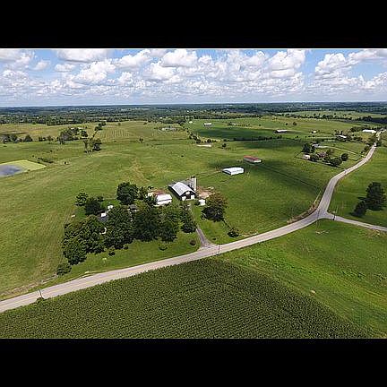 95 acre farm located in central Kentucky. Bedford stone home conveniently located approximately 8 miles from Bluegrass Parkway. Farm has three barns, large detached garage, and lake.