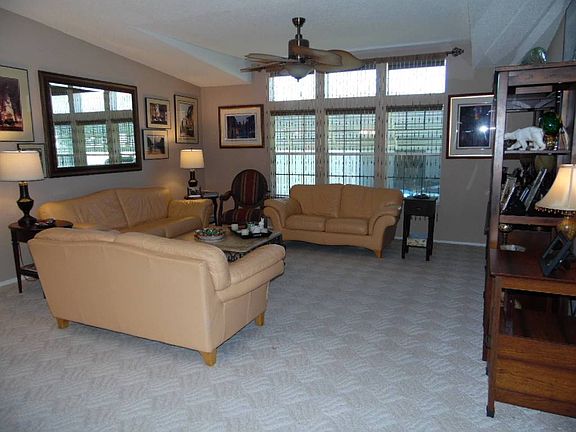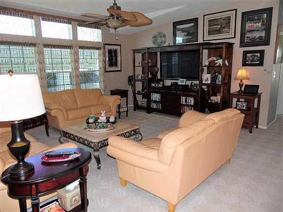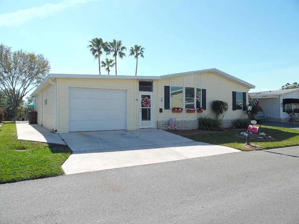 Looking for a large three bedroom, two bath house WITH a garage? Well, look no further! This spacious and open floor-plan is truly something to get excited about. The oversized outdoor patio is the perfect place to relax while taking in the impressive view of the palm trees and5th fairway. You'll find that space is no issue here whenit comes to all three bedrooms, which could comfortably fit Queen sized beds with additional room for more furniture. The kitchen features newer appliances and drywall is throughout the main living area and bedrooms. New roof in 2005 and new A/C in 2018. Home is being sold unfurnished and the purchase includes ONE YEAR FREE GOLF!