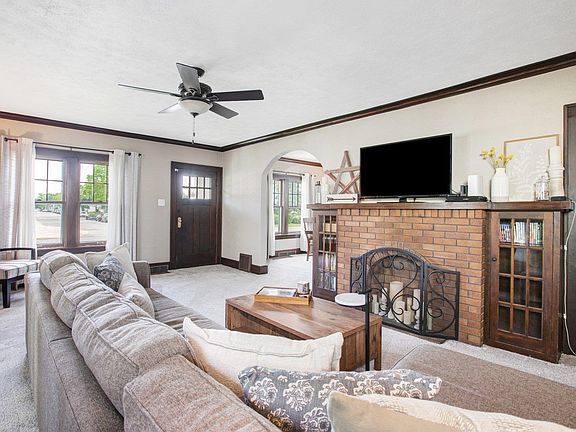Prime, Pristine & Proper! From the moment you walk in you will admire the natural wood work, crown molding, brick fireplace with built-ins. The French doors right off the living room makes the perfect office or reading space. Follow the archway to the large dining room to create lasting memories with your loved ones. The kitchen has sleek black subway tile, stainless steel appliances, and hard surface counter tops and an added bonus of the cutest little eat-in area nook. The primary bedroom has hardwood floors and lots of natural light. The upper full bathroom has been upgraded with clean white tile. There are two additional nice size rooms along with a finished attic area. Make your way outside to the 16 x 32 inground pool that is surrounded with concreate patio and child safety gate. The back yard is fully fenced in and has a two car detached garage. Such a great Mishawaka salt box beauty! Schedule your appointment today before it's too late.