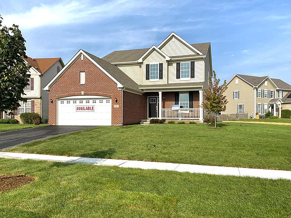 Perfection just got an upgrade!! The Brooklyn model will be the one to make you say YES! Beautiful brick front home greets you as you enter into the two story open entry accented by your gorgeous staircase with iron spindles and stained oak rails. Luxury vinyl plank flooring runs through the entry, kitchen, family, powder room and garage entry. The kitchen that will be the talk of the neighborhood has an abundance of 42" white cabinetry, including a separate desk/office area, iced white quartz counters, pantry and GE stainless steel appliances too! Overside breakfast area or dining room-you choose, because this home has both-all of which are nicely connected to the family room complete with fireplace. Top the first floor off with plenty of large windows, LED recessed lighting and a first floor office and call it your happy place! On the second level, the Owner's suite won't disappoint with plenty of space and an ensuite with designer shower, raised height vanity, and double bowl sink. 3 additional large guest bedrooms and full bath are also located on the second floor. Clubhouse community with in-ground pool, tennis courts, walking trails, ponds, and the acclaimed Minooka Schools! Hurry before it's gone! Homesite 307 is ready for an end of September close! Pictures of a completed and furnished Brooklyn model.