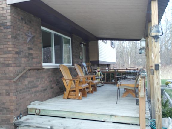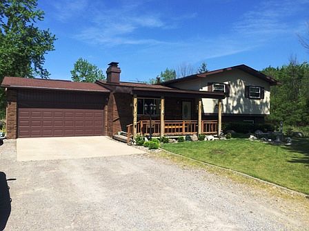 Very well cared for 4 bedroom, 1.5 bath multi-level home in quiet Bangor Twp neighborhood. Wood burning fireplace located in living room & cozy wood burner in lower level family room. Updated kitchen includes large eating area that overlooks large private lot with no neighbors in back. Vinyl windows, roof, furnace & c/a all updated. Rubber roof on covered deck off garage. Extra 20x24 detached garage, tree house, fire pit all set in large back yard....75x240. A great value for the price!