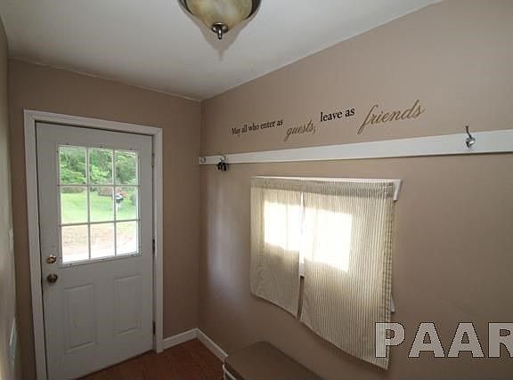 Adorable & affordable! Cute 2 bedroom home features new maple kitchen in 2010. Remodeled bathroom in 2011 includes tile floor and tub surround. Charming dining room. Hardwood floors in living room and bedrooms. Large 3-season front porch. Several newer windows. Updated electrical panel and Trane furnace & central air. New vinyl siding on garage 2013. Brand new 250 sq ft patio overlooks deep yard with mature trees. Custom window coverings. Qualifies for 100% rural development financing.
