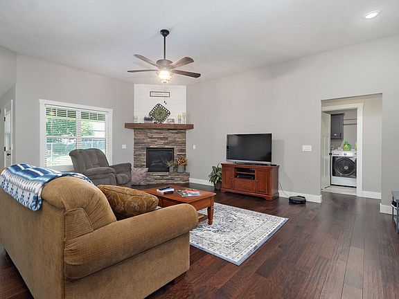 You're gonna love this GORGEOUS 3BR, 2BA home in the heart of Republic! Offering a covered front porch in craftsman design, with German schmear brick finish, wood siding and modern black roof. Tasteful finishes throughout the interior: 10ft ceilings, stone corner fireplace with shiplap accent, dark engineered hardwood flooring, and a striking white kitchen with neutral granite countertops. Split bedroom floor plan offers space and privacy. En Suite bath off the Master boasts a tile shower with glass enclosure, double vanity and a closet that seems to go on for miles! Additional spacious bedrooms, one with sky-high ceilings, host large windows, letting in tons of natural light. The covered back patio looks out over forested acreage, where wildlife abounds. This one won't last long!!