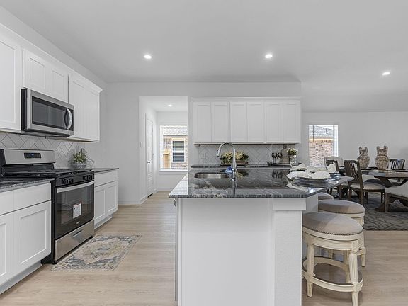 Welcome to the Kingston floor plan in Caldwell Crossing—a stunning single-story home offering 2,031 sq. ft. of living space! This home features 4 bedrooms, 2 bathrooms, a 2-car garage, spray foam insulation. Upon entry, you'll find 2 bright secondary bedrooms with a shared bathroom, featuring vinyl flooring, a linen nook, and a tub/shower combo. At the end of the foyer, the open-concept family room, dining room, and L-shaped kitchen provide the perfect space for entertaining. The kitchen offers extra counter space, a kitchen island, a pantry, and stainless-steel appliances. The utility room provides washer/dryer space and extra storage. The 3rd bedroom has a tall closet and a window to the side yard. The primary bedroom includes 2 windows with backyard views, and the ensuite offers a double sink, vinyl flooring, a linen nook, and a walk-in closet. Unwind on the back patio and embrace the outdoors.