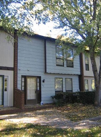 Large eat-in kitchen with stove, refrigerator, dishwasher, and microwave. Wood burning fireplace. Patio and extra storage behind unit.