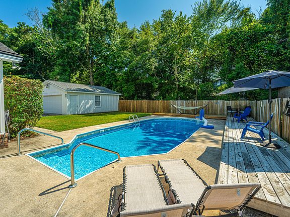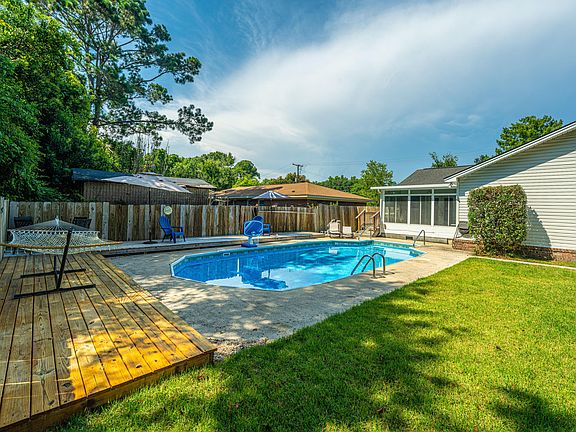 This James Island property is truly a standout opportunity! Its prime location just 5.5 miles from Folly Beach and 8 miles from Downtown Charleston means you can enjoy both the beach and the vibrant city with ease. The single-level brick ranch offers convenient, accessible living, while the pool adds an element of luxury for hosting friends or simply unwinding in a private oasis.The interior is equally impressive, featuring a flexible living space that can be tailored to your lifestyle. The additional family room, bathed in natural light from large windows, creates a warm and inviting ambiance. On cooler nights, the brick-lined fireplace provides a cozy atmosphere. The spacious kitchen is perfect for both casual family meals and larger gatherings, making it the heart of the home.This property offers a unique blend of indoor and outdoor living, promising a lifestyle of comfort and enjoyment for those looking to make the most of their time on James Island. Retreat to the spacious primary suite at the end of the hall, your own private sanctuary complete with a screened porch overlooking the pool ideal for morning relaxation or evening serenity. Across the hall, two additional guest bedrooms and a full bath ensure a comfortable and convenient stay for family and guests. Storage and versatility are a highlight here, with both an attached 1-car garage and a detached 2.5-car garage. This setup offers ample room for vehicles, recreational equipment, or even a workshop the possibilities are endless! With no HOA restrictions, you have the freedom to customize this property to fit your lifestyle. And with its prime location just minutes from Folly Beach, this home offers the perfect blend of coastal living and convenience. Make this beautiful property your own and embrace the James Island lifestyle!