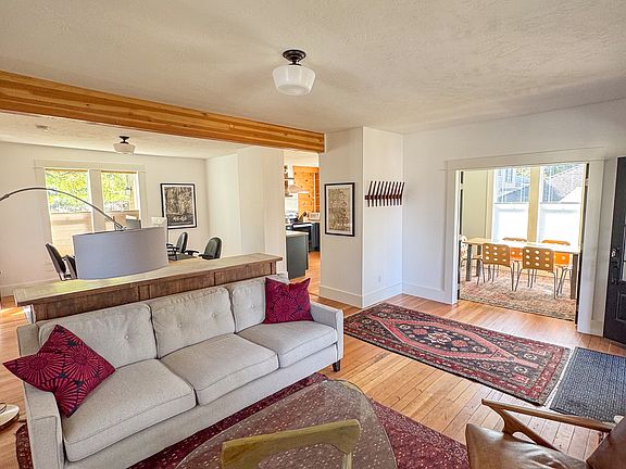Beautiful, remodeled two-unit craftsman home close to downtown Hood River for rent. Lovely neighborhood next to restaurants with a park across the street. Within walking distance of downtown and the Heights. Perfect for someone who wants a Hood River office space with a studio for living/visiting. This combined unit is the main and lower floor of an original Hood River home that was completely remodeled in 2021. The top floor of house is an occupied unit. The available unit is currently configured as a work-from-home office with workspace for 4 people and includes a full bathroom, washer/dryer, a gorgeous full kitchen, work and living space, and a conference room. A large front porch with views of the river is a perfect hangout space. The yard is landscaped and maintained by the landlord. The downstairs, with a separate entrance, has a full bath and kitchenette. The rental's two spaces could also be configured as a two bedroom, 2 full-bath living situation by converting the current meeting room space into a bedroom. Furnishings negotiable. Tenant pays for the internet and power. Other utilities and landscaping/yard maintenance covered by landlord. Free street, driveway parking available plus free parking lot across the street. Owner does not live on site, but is local. No smoking and no pets. Year lease with $2900 security deposit. Please have proof of income and references. Renter pays power and internet. Owner pays water, sewer, garbage. Renters shovel snow. No smoking, no pets, no short term renters or subletters. Renter's insurance recommended. Owner responsible for yard upkeep.