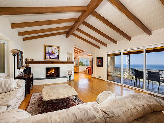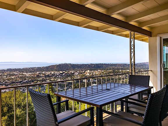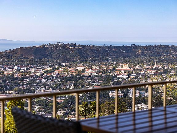 Was in escrow at 3,900,000 but credited buyer 16k. Spectacular panoramic views of the city, ocean, & islands from sunrise to sunset. You'll find privacy & serenity at the end of a long driveway off a cul-de-sac just below Mission Ridge on Santa Barbara's Riviera. This spacious open design house provides exceptional living space & flexibility. Multiple rooms could be used for work-from-home/office space. The entry level w/no stairs has 3 bedrooms, 3 baths (including the master suite), Kit, LR, DR, laundry room, front patio, rear view balcony & two car garage. Master Suite has access to view balcony & separate shower & tub with a view! A third bedroom leads to a side patio with tremendous views. All bedrooms have doors that lead to the outside. The kitchen includes a desk area & a second work sink that is adjacent to a separate laundry room. The living room & dining areas have gas fireplaces. Downstairs has a bonusroom (sic) with access to the backyard and 1 bedroom that opens to the view and rear deck with a large hot tub & backyard. Additional sub-area storage rooms.
