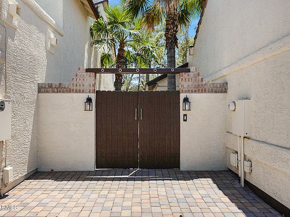 The side entrance provides additional privacy and security. As you continue on into the backyard you'll appreciate the thoughtful design which provides a perfect place to spend time outdoors anytime of the year. Pavers and tile throughout, along with the custom fireplace make this a true retreat!