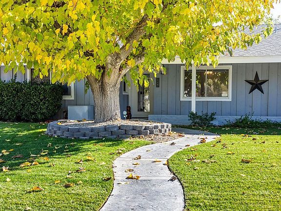 A Storybook Cul-de-Sac Home. Designer Upgrades & Owned Solar. Tucked at the end of one of Ridgecrest's most unexpectedly beautiful cul-de-sacs, this 3 bed, 2 bath home feels like you've slipped into a quieter world where mature trees arch over the street and the neighborhood has a charm all its own. The living and dining rooms share a dual-sided fireplace, casting a warm glow that makes the space instantly inviting. The kitchen, the one everyone has saved on Pinterest, features custom cabinets, granite countertops, a pot filler, and stainless steel appliances that shine in the natural light. It opens to a large dining area perfect for hosting and everyday gathering. The split floorplan keeps the master suite private, complete with an updated, trend-forward bathroom. Outside, the .31-acre lot offers space to unwind, with a block wall for privacy, a large shed, and OWNED solar for added efficiency. This is the kind of home you fall in love with the moment you arrive peaceful, stylish, and filled with character in a location that feels truly special.