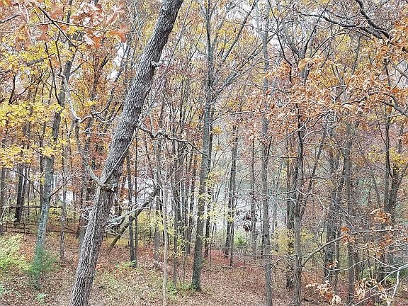 5.33 acres pristine woods on a hill with view of a lake through the trees.