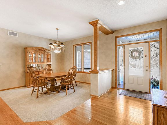 This expansive 3,200+ sq. ft. home in a well-established Elk River neighborhood has everything you’re looking for—sun-drenched spaces, soaring ceilings, and plenty of natural light! The open-concept main level is perfect for gathering, featuring a giant kitchen with stainless steel appliances, a center island, and a spacious eat-in area that looks out over your fully fenced backyard, complete with mature trees, woodlands, and frequent wildlife sightings. It’s like having your own private retreat right at home! A double-sided gas fireplace connects the kitchen to the living room and formal dining area, making it perfect for cozy nights or entertaining.
