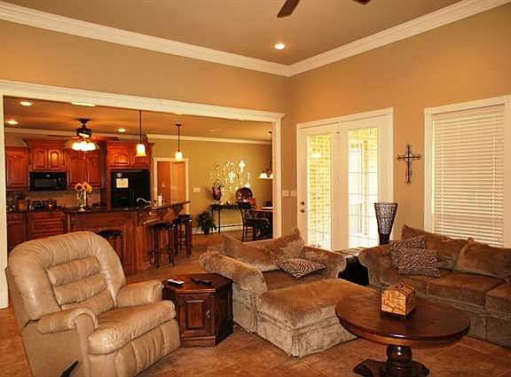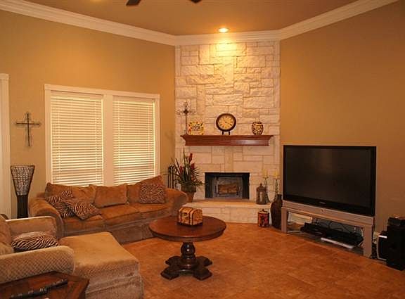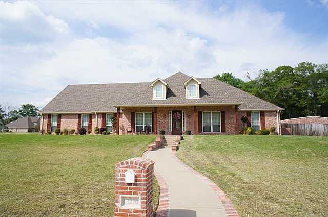 When imagining the American Dream, this is the home that will come to mind! This home boasts Southern charm with the welcoming front porch, cedar posts, stained window shutters and window dormers. Custom built on a 0.68 acre corner lot in picturesque Southhaven Addition, this home has an open floor plan that is great for entertaining or a large family. Very spacious with 4 oversized bedrooms, large living area, formal dining, gameroom and 2.5 baths. Loaded with amenities and features including 13' ceilings, heavy moldings, stone fireplace, tile floors, sink in laundry room, oil-rubbed bronze lighting and fixtures. The kitchen is a cook's dream with tons of custom stained cabinets and granite countertops, huge walk-in pantry, double oven and island. Amazing master suite with corner garden tub, separate shower, double vanities and 2 walk-in closets. Very nice exterior with large covered patio, huge backyard with privacy fence and 20x10 brick storage building. Welcome Home!!