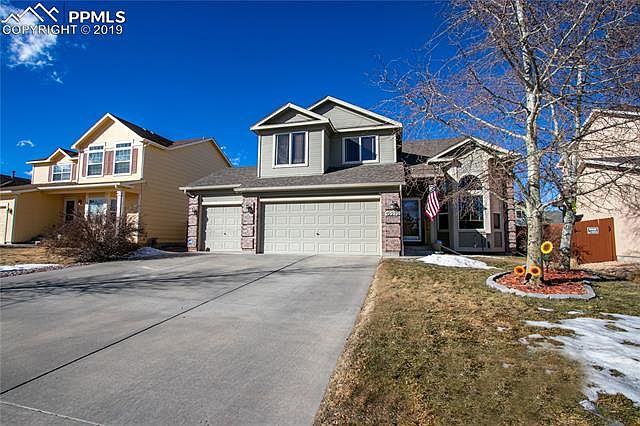 Welcome to Meridian Ranch. This neighborhood offers many amenities from pools and a Rec Center, to a golf course and parks. This breathtaking home has a fabulous living room which has vaulted ceilings and a stunning upper level loft. The kitchen features stainless appliances and generous space to move about both the eat in area, and family room. Go to bed each night and enjoy the amazing sunsets through the many windows in the bright master suite. The master bath has dual vanities and an oversized jetted tub. The basement is finished and is great for entertaining or a future theatre room. Additionally, the basement hosts another bedroom and full bath. This home is flawless and is an easy commute to Peterson AFB.