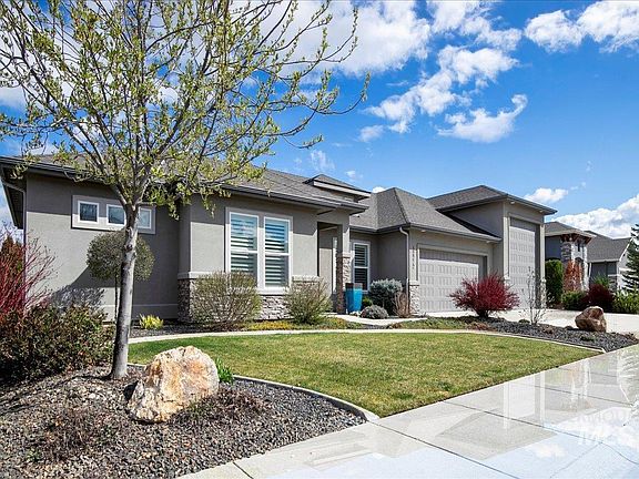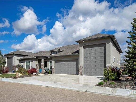 Beautiful, single level lake front home on .27 acres with a private beach. Gourmet kitchen with quartz and granite countertops, painted maple cabinets, double ovens, stainless steel Bosh appliances and two pantries. Beautiful engineered hardwood floors, 10 ft. ceilings, and large windows allowing for an abundance of natural light. Great room has stained beam ceiling and a full wall stone fireplace. This home boast two En Suites (one with a pass-through to the laundry room), large walk-in closets, and an Office. Step outside and relax in the backyard under the large 32' x 16' covered patio with electric blinds or the private beach - both with beautiful views! Impressive 1352 sq. ft. garage with 15'6"W x 50'L RV Bay with 12' X 14' garage door which includes both 50 AMP & 30 AMP plugs. Backyard also includes a 8x12 shed/workshop. This beautiful home is a must see!