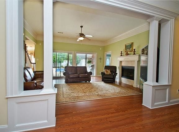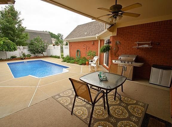 Flowing open plan w/view of the pool from many rms, sep Hearth Rm & LR, 2 gas FP's, built-ins, spacious kitch w/BF bar & BF rm, Sep DR, lg mstr w/lux bath, 3 BR's down, 4th BR/Play up w/private bath, 3.1 ba, 3-car gar, cov'd patio, lg stor bldg w/cov'd porch. No carpet downstairs! Inviting saltwater pool, fenced yard, 3436 sf per appraisal, lg laundry w/sink & rm for frig, smooth ceilings thru-out, 9' ceilings, 2 bay windows, wet bar, walk-in attic. New roof 2012, New pool liner/pump/filter/generator 2012, Workbench in 3-car gar, 2-sty storage bldg with cov'd porch & electric & floored attic, termite contract .