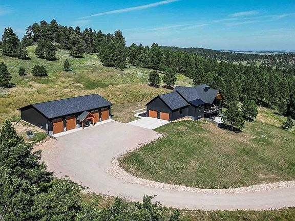 Call Falina Selchert with Real Broker of the Black Hills at 605-759-0808 to schedule your tour of this incredible 6.45-acre property with direct Bear Butte views. The sellers are heartbroken to let this dream home go, but due to unforeseen family medical needs, they must relocate. Their loss is your gain. This newly built home offers 6 bedrooms, 3.5 bathrooms, right at 4,500 finished square feet. Designed with quality in mind, you’ll find vaulted ceilings with exposed beams, quartz countertops, Pella fiberglass windows, and sound-insulated walls throughout. The main kitchen is a showstopper with a farmhouse sink, double oven, 5-burner stovetop, and walk-in pantry. A second full kitchen in the basement plus 2 laundry rooms makes this home perfect for multi-generational living. Cozy up by one of the two Napoleon fireplaces or retreat to the safe room with a Fort Knox door. Outdoor living shines with a structural steel deck, vaulted roof, and concrete patios. The insulated and heated 850 SF garage features floor drains, hot/cold spigots, and natural gas hookups. The 2,560 SF barn is equally impressive with four overhead doors, PVC panel ceiling, natural gas heater, plumbing for bath/wet bar, and trench drains. Utilities include natural gas, fiber optic internet, cistern, septic, and an upgraded water softener. This property is move-in ready with new gravel drive, French drain, and landscaping. Don't let this overbuilt dream home pass you by.