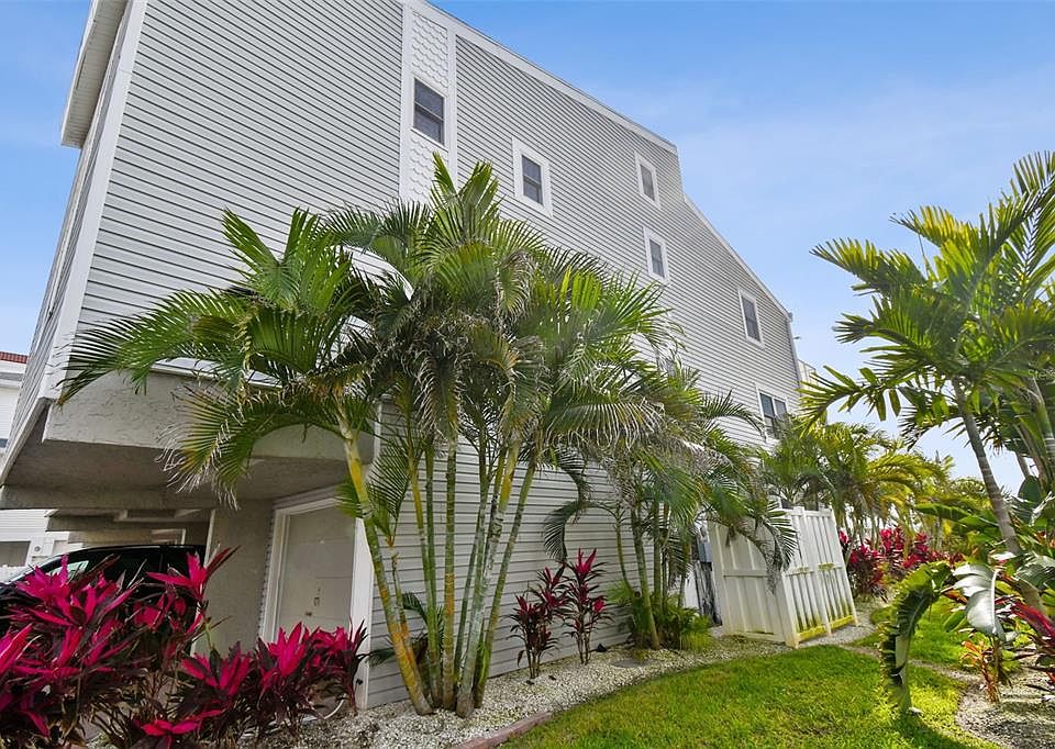 This hidden gem townhome on Treasure Island has gorgeous views of the Gulf of Mexico from all three floors. This 2 bedroom, 2 1/2 bath end-unit is newly renovated with luxury vinyl plank flooring and fresh interior paint throughout. The main level (second floor) has an open-concept layout with a spacious balcony off the living room and sunset views from your sofa. The kitchen features wrap-around cabinets and an island with new quartz countertops, new stainless steel appliances, and new subway tile backsplash. Off the kitchen, there is a laundry room and a half bath. Upstairs on the third floor, there are 2 bedrooms and 2 full bathrooms. The master bedroom has sliders out to the second balcony and an updated master bathroom with two vanities. The second bedroom is on the opposite side of the home with a full bath just outside of the door. All 3 bathrooms have new quartz countertops, new toilets, new sinks, and new faucets—and all of the windows and sliders in the home are impact-resistant! From the third level, there is access to a loft space with multiple windows providing plenty of natural light—great for a quiet hideaway or office! The one-car garage on the ground level has plenty of space for storage and features an extra shower, which is great after a sandy day at the beach! Off the garage is a bonus room with access to a large fenced-in patio with gated access to the beach. Come experience these beautiful views yourself!